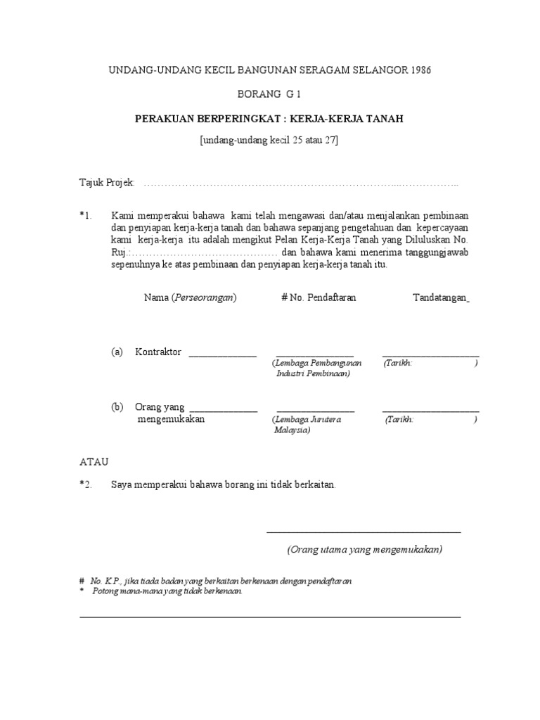 Certificate Of Completion And Compliance Borang G Selangor Bm Pdf